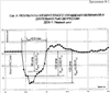 Приложение 5. Приведена развертка депрессионной зоны второго цикла с регистрацией величины и длительности депрессии при трехклапанной компоновке ДСК-1. Время действия депрессии составило 0,9 с, а величина депрессии от 60 до 117 атм, или 0,4-0,74 Ргст.