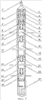 2. Устройство для стимуляции работы нефтегазовых скважин, включающее геофизический кабель для спуска устройства и состоящее из приборной головки, пускового механизма, депрессионного снаряда в виде набора приемных клапанных фильтров, соединенных между собой депрессионными камерами с атмосферным давлением, и манометрического блока, отличающееся тем, что депрессионный снаряд состоит из двух и более секций, между которыми установлены пневмогидравлические реле автоматического действия для управляемой задержки времени открытия клапанных фильтров в диапазоне 1-5 мин при раздельной обработке отдельных интервалов перфорации, при этом каждая из секций состоит из двух и более приемных клапанных фильтров пневмогидроуравновешенной конструкции с проходными каналами диаметром от 10 до 50 мм, соединенных между собой депрессионными камерами длиной 1,5 до 3,0 м в единый пневмогидроканал секции, обеспечивающими автоматическое открытие всех клапанных фильтров секции и создание в скважине депрессионной зоны с величиной депрессии в пределах (0,1-0,9) гидростатического давления, продолжительностью действия депрессии 0,6-1,2 с и более при управляемом коэффициенте воздействия на пласт – Квп до 1,0 и более, при этом нижняя депрессионная камера каждой секции использована в качестве контейнера для сбора и подъема на поверхность извлеченного из пласта кольматанта; в качестве пускового механизма применен электрогидравлический пусковой механизм, при открытии которого под действием гидростатического давления имеется возможность открытия верхнего приемного клапанного фильтра первой секции с автоматическим последовательным открытием ниже расположенных приемных фильтров с одновременным запуском пневмогидрореле задержки времени, открытия клапанной системы нижерасположенной секции и создания в скважине депрессионной зоны с величиной депрессии в пределах (0,1-0,9) гидростатического давления, продолжительностью действия депрессии 0,6-1,2 с и более при управляемом коэффициенте воздействия на пласт Квп до 1,0 и более.