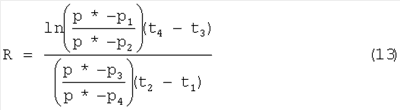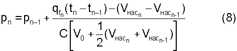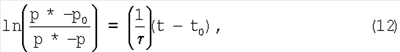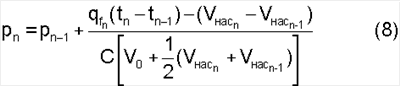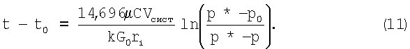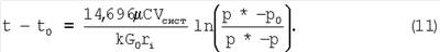 Первую группу параметров в правой части уравнения (11) и предшествующую логарифмическую группу можно рассматривать для восстановления давления как постоянную времени . Таким образом, приняв это определение и преобразовав уравнение (11), получим: