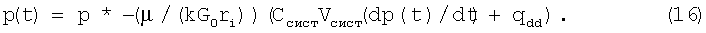 В правой части уравнения (16) второй член в скобках – (Ссист Vсист (dp(t)/dt)+qdd) – целиком представляет собой скорость притока флюида из пласта, вычисляемую путем коррекции скорости перемещения поршня (qdd) на основе параметров и условий работы скважинного прибора. Ссист – это сжимаемость флюида в гидравлической линии прибора, а Vсист – объем гидравлической линии, G0 – это геометрический коэффициент, а ri – радиус пробоотборного зонда.