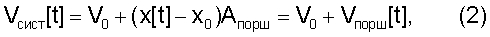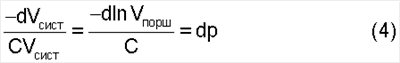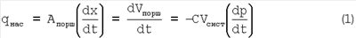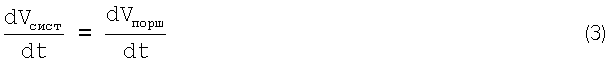 Уравнение (2) показывает, что при отводе поршня насоса объем системы увеличивается:
