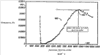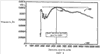 8. При помощи компьютера, или процессора, 307 строят график зависимости поглощательной способности или мощности проходящего излучения (прозрачность/поглощательная способность) от давления с определением давления начала конденсации или давления насыщения.