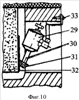 Если же по цепи, все элементы которой находятся в одинаковых температурных условиях (Т0=T), пропустить электрический ток в направлении, указанном на фиг.8, то свободные электроны начнут перемещаться в термоэлементе 24 от спая (а) к спаю (в), причем это движение является замедленным, поскольку электроны тормозятся электрическим полем. Движение электронов от спая (а) к спаю (в) сопровождается переносом энергии. На спае (а) электроны, отбирая энергию атомов, приобретают кинетическую энергию; на спае (в), сталкиваясь с атомами кристаллической решетки термоэлемента 24, они отдают ему энергию. В связи с этим спай (а) охлаждается, а спай (в) нагревается. Причем скопление электронов на спае (в) способствует тому, что он заряжается положительно, а спай (а) – отрицательно.