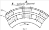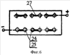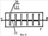 В поперечных прорезях основных фрикционных накладок 5 по их ширине установлены пластинчатые термопары 19, которые образованы двумя спаренными пластинами 20 и 21, изготовленными, например, из хромеля (+) и копеля (-). Со стороны нерабочей поверхности основной накладки 5 пластины 20 и 21 разноименного знака соединены между собой узкими пластинами-перемычками 22, а со стороны их рабочих поверхностей – платинами-ребрами 23. Как сверху, так и снизу основных накладок 5 соединение пластин 20 и 21 осуществляется через полшага. Таким образом, получаем термобатарею в каждой из основных накладок 5, термобатареи которых могут быть соединены последовательно между собой, образуя, таким образом, первый контур.