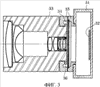 Фиг.3 иллюстрирует один пример конкретной конструкции согласно п.3 формулы настоящего изобретения. Основной корпус 31 фотокамеры имеет элемент 32 восприятия изображения на своей внутренней поверхности на одной стороне (правая поверхность или задняя поверхность на фиг.3) (чертеж и пояснение видоискателя и прочих механизмов опущены). На внутренней поверхности на другой стороне основного корпуса 31 фотокамеры (левая сторона или передняя сторона на фиг.3) устанавливается крепление 36 с конструкцией, соответствующей креплению секции 33 сменяемого объектива. Пылезащитная пластина 34, сделанная из стекла или пластмассы, прикрепляется к внутренней стороне крепления 35, чтобы предотвращать попадание пыли или тому подобного в основной корпус 31 фотокамеры.