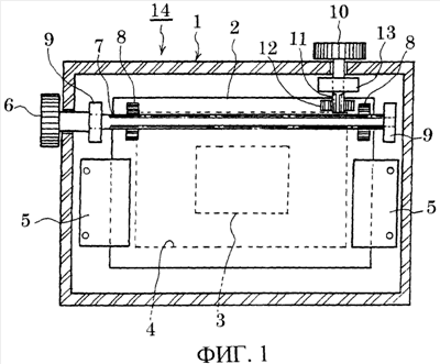 Конкретный конструктивный пример цифровой фотокамеры 14 согласно настоящему изобретению показан на фиг.1. Фиг.1 представляет собой вид в разрезе, иллюстрирующий строение, видимое с обратной стороны (со стороны фотографа) цифровой фотокамеры 14, но та же самая конструкция в качестве строения, показанного на фиг.1, может использоваться и в передней стороне (стороне фотографического объектива) цифровой фотокамеры 14. В этом случае, однако, элемент 3 восприятия изображения, показанный пунктиром на фиг.1, установлен реально, так что воспринимающая поверхность элемента 3 восприятия изображения обращена к передней стороне поверхности листа на фиг.1 (показанного сплошной линией).