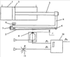 Наиболее близким к предлагаемому изобретению по совокупности признаков является струйная позиционная система числового управления, содержащая цилиндр с установленным в нем поршнем со штоком, причем шток жестко связан с базовой измерительной шкалой (программоносителем), которая, воздействуя на измерительный элемент (датчик типа «сопло – приемный канал»), формирует на выходе измерительного элемента управляющий сигнал («Пневматика и гидравлика. Приводы и системы управления». Выпуск 2. Под ред. Е.В.Герц, М.: Машиностроение, 1975, с.159, рис.2).