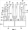 Однако в POTS-контактах 12 и в контактах телефонной линии 14 создан наклонный контактный язычок 34, который продолжается от изогнутой назад части 30 на передней стороне. В показанном примере осуществления изобретения контактный язычок 34 образует точечный контакт 36 таким образом, что вершины контактов 12 и 14 могут сойтись в точке размыкания 18. В частности, они упруго сойдутся в этой точке размыкания так, что может произойти соединение, подобное тому, что показано на фиг.3 и фиг.4. В качестве альтернативы, любое пригодное устройство, такое как вилка, в частности, показанная на чертеже в качестве выступающей части 41, может быть вставлено либо с передней стороны 20 или, как показано, с тыльной стороны 22 для того, чтобы отделить контактные язычки 34 друг от друга. В показанном примере осуществления изобретения выступающая часть 41 выполнена как часть разделителя сигналов 24, в частности как часть его корпуса, который может быть сделан, например, из пластмассы. Однако выступающая часть 41 или подходящая вилка также могут использоваться отдельно от разделителя сигналов 24 и встраиваться с передней стороны 20.