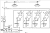 Вышесказанное аргументируется следующим: при работе одного из секторов определенный расход воды из напорного трубопровода через клапан управления поливом и его водопроводящие каналы поступает по гидролинии в полость управления гидрореле и во внешнюю систему защиты. Благодаря дюзе, осуществляющей определенный отток из внешней системы защиты, обеспечивается устойчивое определенное давление в системе и устойчивая работа машины, а при возникновении аварийной ситуации – падение давления в системе и остановка машины. Однако при указанной выше гидравлической связи давление создается не только в полости управления гидрореле и внешней системе защиты, но и в выходных каналах секторных клапанов управления поливом, орошаемая площадь которых в данный момент не поливается машиной. Это приводит к подъему давления перед эластичной мембраной клапана управления поливом, что вызывает неустойчивость его работы и точность срабатывания, а в отдельных моментах приводит к его открытию. В результате этого вода из напорного трубопровода начинает поступать в полость гидрореле и внешнюю систему защиты через те клапаны управления поливом, установленные в секторах, где полив (по влажности почвы) не должен осуществляться. Это приводит к увеличению расхода воды, поступающей в полость гидрореле и внешнюю систему защиты, в 2-3 раза (в зависимости от количества клапанов управления поливом). Возникновение аварийной ситуации на дождевальной машине приводит к открытию исполнительного клапана системы защиты, но отток в атмосферу, вызванный открытием клапана, будет меньше, нежели приток (превышающий обусловленный в 2-3 раза). Это не позволит снизить давление в полости гидрореле до необходимой величины, обеспечивающей отключение машины от питающей сети, что приводит к поломке машины. Таким образом, известное решение (прототип) обеспечивает надежную работу в режиме автоматики только лишь при работе одного сектора полива (одного клапана управления полива) при условии, что все другие в этот момент находятся в отключенном состоянии. Однако в данном случае при подходе машины к другому сектору полива требуется подключение соответствующего секторного клапана управления поливом и отключение клапана управления в секторе, полив которого был проведен. Это требует постоянного вмешательства оператора в работу машины, не обеспечивая автоматизацию ее работы.