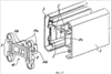 На фигуре 15 изображена телескопическая направляющая для выдвижных ящиков в разобранном виде в аксонометрии с устройством для сцепления двух направляющих.