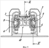 На фигуре 9 показан вид спереди, соответствующий фигуре 7, с установленным устройством для сцепления отдельных направляющих.