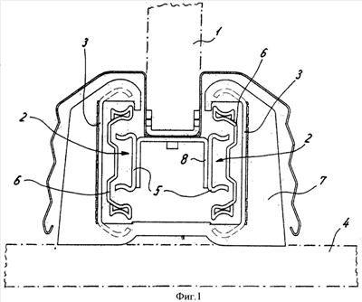 Выдвижные направляющие 5 закреплены на U-образном профиле 8, который, в свою очередь, прочно соединен с выдвижным элементом 1.
