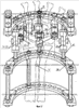 После этого малыми поворотами гаек 51, навинченных на штанги, скрепляющие дистальное 3 и среднее 2 кольца, выполняют тракцию (вытяжение), а также репозицию отломков лучевой кости, что делают по оси лучевой кости и с последующим контролем аппаратом ЭОП.