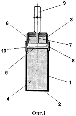 Крышка может быть выполнена в виде стакана, который соосен цилиндрическому корпусу и обращен открытым концом к полости цилиндрического корпуса, при этом вторая емкость размещается внутри стакана, а диск служит в качестве поперечной перегородки, плотно закрывая стакан с его открытого конца.