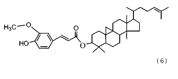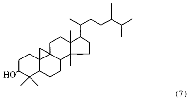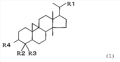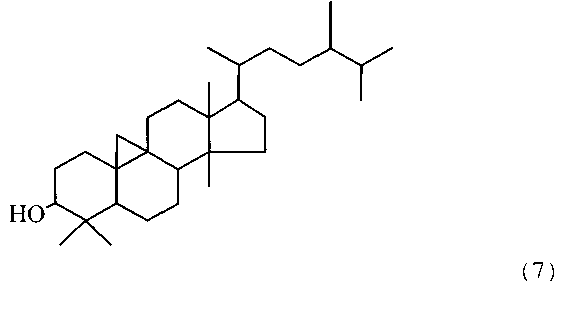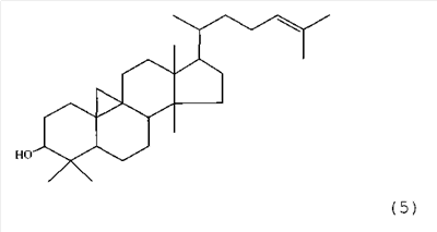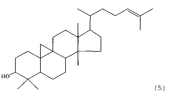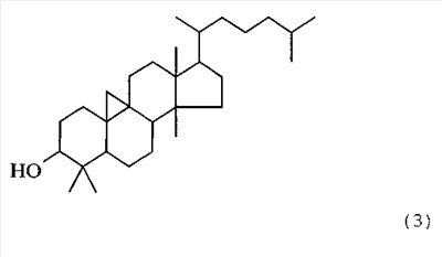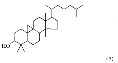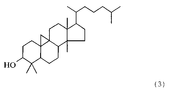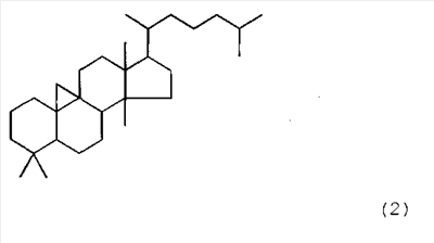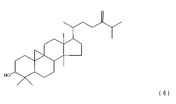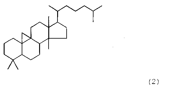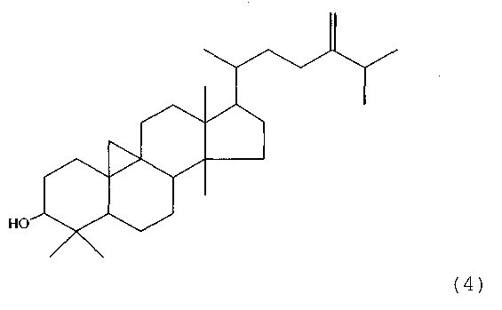 [Тестовый пример 2] В этом тесте действие соединения, содержащего циклоланостановый скелет, по предохранению ткани поджелудочной железы исследовали с использованием мышей db/db, известных как животное-модель для гипофункции поджелудочной железы или дисфункции ткани поджелудочной железы. (1) Приготовление образца В качестве тестовых образцов 1 и 2 соответственно использовали 9,19-циклоланостан-3-ол и 24-метилен-9,19-циклоланостан-3-ол, полученные выше в Примере получения 1. (2) Способ теста В этом тесте были использованы 6-недельные самцы мыши db/db (закупленные в Clea Japan, Inc). Эти мыши были подразделены на группы, каждая из которых состояла из 7 животных. Каждый тестовый образец растворяли в DMSO и доводили концентрацию до 1 мкг/мл с помощью физиологического солевого раствора. Конечную концентрацию DMSO доводили до 0,2%. Модельным мышам перорально вводили 1 мл тестового образца один раз в день каждый день в течение 42 дней с помощью зонда. На 43-й день непрерывного введения извлекали поджелудочную железу, разделяли на три части выше, по центру и ниже стороны двенадцатиперстной кишки и фиксировали раствором формалина и затем обычным способом готовили парафиновые блоки. Из парафиновых блоков были приготовлены срезы, и их подвергли окрашиванию гематоксилин-эозином. С применением окулярного микрометра на микроскопе (“ECLIPSE E600”, NIKON CORP.) на каждом срезе было измерено количество островков Лангерганса, присутствующих на срезах 3 точек поджелудочной железы, и площадь островка Лангерганса, имеющего максимальную площадь. (3) Результаты теста Количество островков Лангерганса в срезах поджелудочной железы на 43-й день непрерывного введения образцов приведены в Таблице 2, и значения максимальной площади островков Лангерганса в тот же день приведены в Таблице 3. Количество островков Лангерганса мышей, которым вводили тестовый образец 1 или 2 составляли 149 и 148% количества островков Лангерганса у мышей, которым вводили отрицательный образец, соответственно, и было обнаружено, что это количество являлось очевидно большим. Аналогично максимальные значения площади островков Лангерганса у мышей, которым вводили тестовый образец 1 или 2, оставались в 1,8 и 3,1 раза больше по отношению к значениям, наблюдаемым в отрицательном тесте, и таким образом было обнаружено, что редукция островков Лангерганса в следствие расстройства поджелудочной железы было предотвращено. Из данных результатов было выявлено, что 9,19-циклоланостан-3-ол и 24-метилен-9,19-циклоланостан-3-ол обладают действием защиты тканей поджелудочной железы, особенно эндокринных клеток.