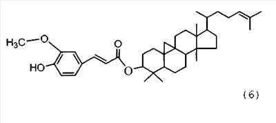 -оризанола и способ синтеза соединения с использованием продукта его гидролиза в качестве исходного материала раскрыты в Выложенном Патенте Японии Номер 2003-277269. Кроме того, когда заместитель R1 общей формулы (1) содержит двойную связь, могут быть получены различные производные соединения с использованием методики преобразования части двойной связи в альдегид путем реакции разложения озона и связывания с ним фосфоната, методики присоединения водорода к части двойной связи или методики окисления части двойной связи озоном для преобразования ее в альдегид или кислоту. Кроме того, способы получения не ограничены способами химического синтеза, и соединения могут быть биологически продуцированы с использованием микроорганизма и т. п. В качестве альтернативы они могут быть продуцированы с использованием ферментов, полученных из микроорганизмов.