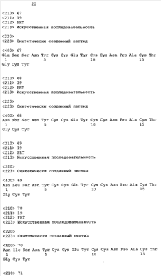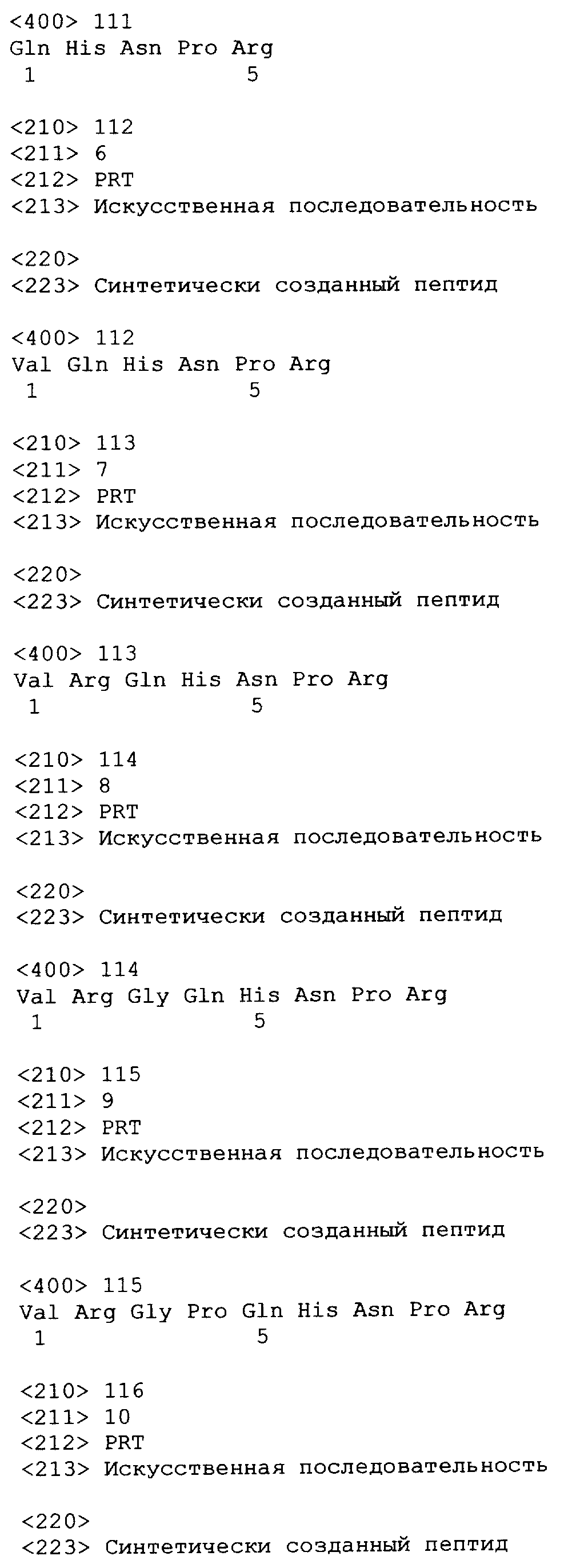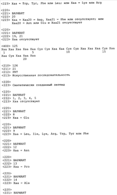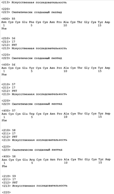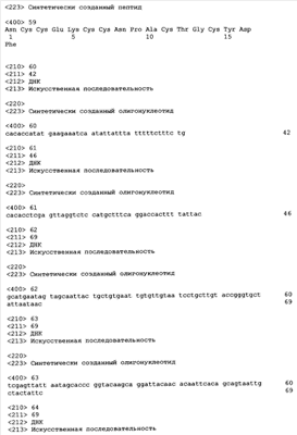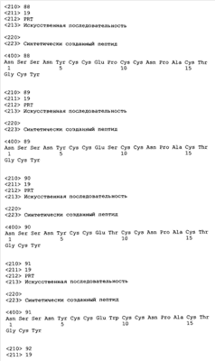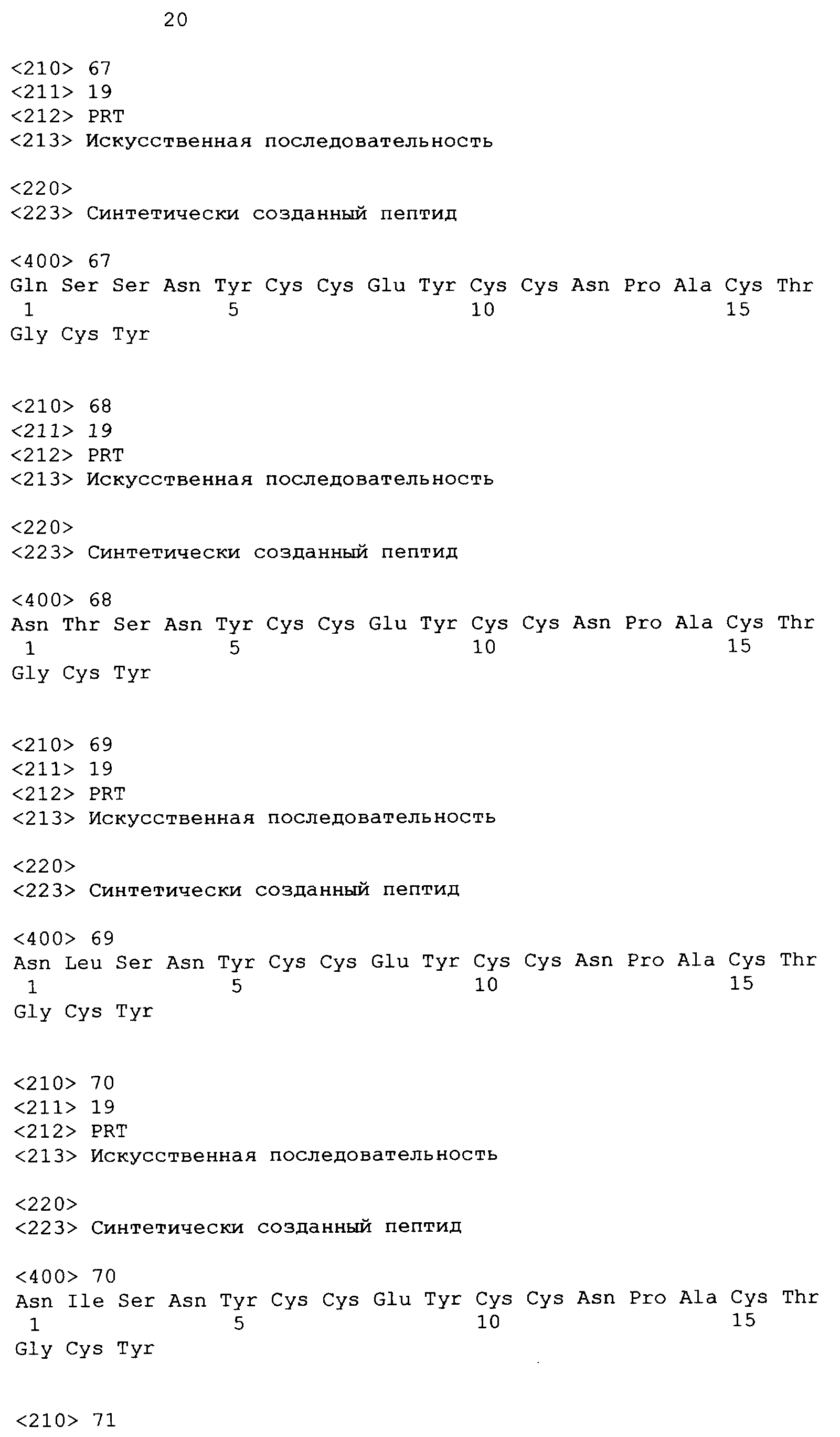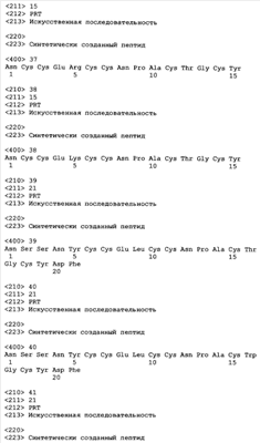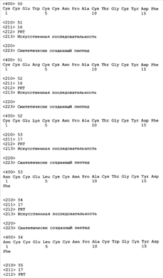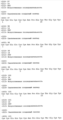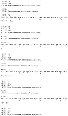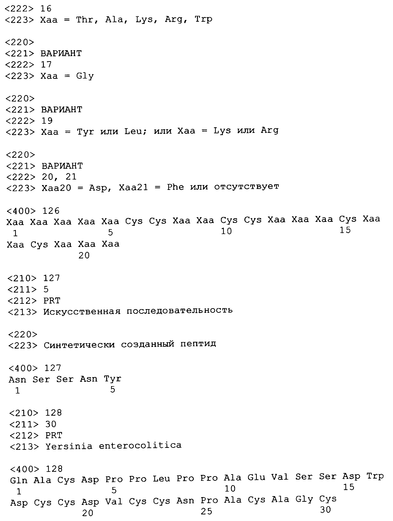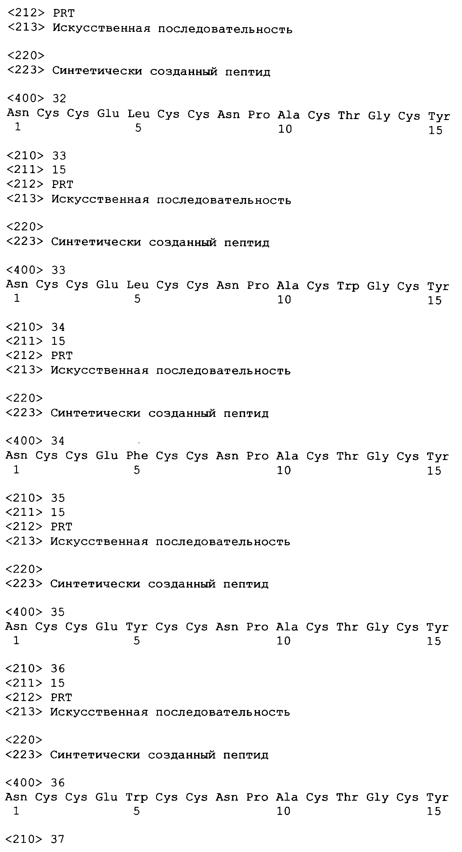 Xaa16 Gly17 Cys18 Xaa19 Xaa20 Xaa21, где Xaa1 Xaa2 Xaa3 Xaa4 Xaa5 является Asn Ser Ser Asn Tyr или отсутствует или Xaa1 Xaa2 Xaa3 Xaa4 отсутствует и Xaa5 является Asn; Xaa8 является Glu или Asp; Xaa9 является Leu, Ile, Val, Trp, Tyr или Phe; Xaa16 является Thr, Ala, Trp; Xaa19 является Trp, Tyr, Phe или Leu или отсутствует и Xaa20Xaa21 является AspPhe.