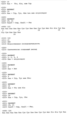 Кроме того, одна или более дисульфидных связей могут быть замещены альтернативными ковалентными связями, например амидной связью, сложноэфирным звеном, алкильным звеном, тиосложноэфирным звеном, лактамовым мостиком, карбамоиловым мостиком, мочевинным звеном, тиомочевинным звеном, звеном фосфонатного сложного эфира, алкильным звеном и алкенильным звеном, эфиром, тиоэфирным звеном или аминозвеном. Например, Ledu et al. (Proceedings Nat’l Acad. Sci. 100:11263-78, 2003) описывает способы получения лактамных и амидных сшивок. Schafmeister et al. (J. Am. Chem. Soc. 122:5891, 2000) описывает стабильные, полностью углеродные сшивки. В некоторых случаях образование таких альтернативных сшивок требует замещения остатков Cys другими остатками, такими как Lys или Glu или неприродными аминокислотами.
