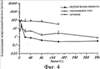Тазаротен также вводили в субконъюнктивальную область. Оценивали три лекарственные формы: водную суспензию тазаротена, описанную в Примере 2 (50 мкл раствора, 1 мг тазаротена), раствор тазаротена в оливковом масле, описанный в Примере 3 (50 мкл раствора, 1 мг тазаротена), и суспензию из микросфер поли(лактидгликолид)а, описанную в Примере 1. После введения концентрации тазаротена и тазаротеновой кислоты в стекловидном теле, сетчатке и внутриглазной жидкости определяли через 2, 8, 24, 48, 96, 168 и 336 часов после введения (см. Фиг.1-8). Данные измерений показывают, что субконъюнктивальное введение обеспечивает значительные уровни тазаротена и тазаротеновой кислоты в глазных тканях. Более важно то, что отношение тазаротена к тазаротеновой кислоте было значительно ниже, чем обнаруженное при прямом введении тазаротена в стекловидное тело, как показано на Фиг.8. Это указывает на более высокую конверсию пролекарства в активное лекарство при данном способе введения. Значения концентрации в стекловидном теле суммированы в таблице 1. В таблице 1 средняя концентрация в стекловидном теле относится к усредненной концентрации в стекловидном теле, измеренной от 0 до 168 часов после введения. Средняя концентрация в стекловидном теле для каждого момента времени использовалась для расчета общей средней концентрации в стекловидном теле через 168 часов для данного пути введения и лекарственной формы. Временные зависимости концентрации в стекловидном теле приводятся на Фиг.1-7. В заключение данные четко показывают более эффективную доставку тазаротеновой кислоты с помощью субконъюнктивального введения по сравнению с внутриглазным введением. Важно также отметить то, что концентрации ретиноидов тазаротена и тазаротеновой кислоты оставались на низком эффективном уровне в течение 336 часов (2 недели).