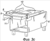 Ход дверного элемента 8 далее поясняется со ссылкой на Фиг.3а-3с. Согласно Фиг.3а: дверной элемент находится в первом положении, в котором дверца закрывает и уплотняет проем доступа к стерилизационной камере 6. Когда дверца находится в этом положении, процесс стерилизации можно проводить внутри камеры 6. В этом положении дверца запирается запирающим средством 11; в данном случае – запорным засовом (не показан), который входит в запорное отверстие 13, выполненное на дверном элементе. Также можно использовать и другие запорные средства. Но запорное средство должно иметь размеры, выдерживающие рабочее давление, применяемое в стерилизационной камере во время процесса стерилизации. После выполнения процесса стерилизации, когда нужно открыть дверцу, запорное средство 11 размыкается, и дверной элемент 8 перемещается в его второе положение (открытое положение) двумя этапами. Во-первых, согласно Фиг.3b, дверной элемент 8 поворачивается вокруг поворотного и скользящего вала 9, с поворотом около 90°, т.е. в этом случае – из положения, в котором дверной элемент 8 по существу занимает вертикальное положение и закрывает проем доступа в стерилизационную камеру 6, в положение, в котором дверной элемент 8 занимает по существу горизонтальное положение и параллелен верхней поверхности стерилизационной камеры 6. Во-вторых, согласно Фиг.3с, дверной элемент 8 скользит по направляющим 10 в положение, в котором по меньшей мере большая часть дверного элемента 8 расположена на стерилизационной камере 6, т.е. во второе положение – согласно Фиг.1 и 2. Следует отметить, что Фиг.3а-3с показывают только стерилизационную камеру 6 и дверной элемент 8 (и относящиеся к ним детали) и не раскрывает наружный корпус 7, как на Фиг.1 и 2. Из Фиг.1 и Фиг.2 следует, что дверной элемент в его втором (открытом) положении находится в пространстве между стенкой стерилизационной камеры и наружным корпусом 7. Это является преимуществом, т.к. внутренняя поверхность дверного элемента 8, обращенная внутрь стерилизационной камеры 6, может сильно нагреваться (или покрываться горячим конденсатом) после выполнения стерилизации, и таким образом внутренняя поверхность не будет открыта пользователю, как в устройствах известного уровня техники, в которых дверной элемент открывается как обычная дверца. Причем это техническое решение более экономное с точки зрения занимаемого пространства, чем в устройствах известного уровня техники, в которых дверной элемент скользит в плоскости, перпендикулярной к проему стерилизационной камеры, т.к. стерилизационное устройство в этом случае должно быть по меньшей мере в два раза шире в направлении скольжения, чем сама камера, чтобы было место для дверцы, когда камеру нужно открыть. Следует отметить, что аналогичные конструкции дверного элемента возможны в объеме настоящего изобретения, согласно которым дверца располагается на дне стерилизационной камеры или вдоль стороны камеры. Но в описываемом выше варианте осуществления, согласно Фиг.3а-3с, для обеспечения желательного равномерного давления на дверном элементе необходима только одна точка уравновешивания. За счет применения этой конструкции дверцы обеспечивается более эффективная с точки зрения занимаемого объема конструкция, целесообразная для постоянной установки устройства на стенке, подставке или