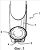 на фиг.3 показан вид спереди мундштука ингалятора согласно предпочтительному варианту осуществления изобретения, причем в верхней части чертежа показана часть мундштука, вставленная в главный корпус ингалятора;