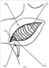 Недостатками данного способа является то, что сохраняется большая полость на месте удаленной подмышечной и подлопаточной клетчатки. Кроме того, наложение сковозных швов, лигатуры которых выводятся на кожу и завязывают на валиках, угрожает, во-первых, проведением инфекции из кожи внутрь раны с развитием в ней воспалительных явлений и, во-вторых, развитием трофических нарушений в местах расположения валиков.