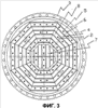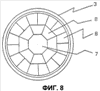 Фиг.8 – распределительная тарелка 3, которая содержит первую центральную деталь 7 и несколько первых секторов 8 и в которой несколько первых секторов 8 разделены на два кольца;
