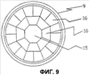 Фиг.5 – боковая проекция устройства сбора, которое содержит собирающую тарелку 9, пункты 10 сбора и вторую систему 11 транспортирования текучей среды;