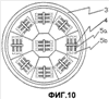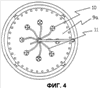 Фиг.4 – вид снизу устройства сбора, которое содержит нижнюю тарелку 9а колонны, пункты 10 сбора и вторую систему 11 транспортирования текучей среды;