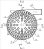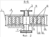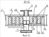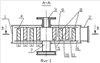 В нижней части цилиндрического корпуса 1 установлен нижний горизонтальный диск 6 с возможностью вращения на валу 7, установленном в подшипниковом узле (на фиг. не показан), закрепленном на нижней поверхности внешней стороны цилиндрического корпуса 1, например, болтовым соединением. Вращение нижний горизонтальный диск 6 получает от электродвигателя через клиноременную передачу (на фиг. не показаны).