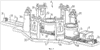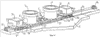 Продольное перемещение основания 10 происходит с помощью подъемных устройств 30 и устройств 31 перемещения. На фиг.5 подъемное устройство 30 и устройство 31 перемещения показаны подробно. В качестве подъемного устройства 30 между основанием 10 и устройством 31 перемещения расположены гидравлические домкраты 37. Устройство 31 перемещения включает в себя ролики 35 большой грузоподъемности, движущиеся по направляющим 34 и расположенные на расстоянии пути перемещения лебедки 36.