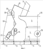 На фиг.1 изображена половина вида сбоку известной истирающей мельницы с двумя измельчающими валками, из которых показан, однако, только один измельчающий валок 2, а также станина 20. Передача 4 мельницы под чашей 3 через подошвенную плиту 27 передачи соединена с фундаментной рамой 15 фундамента 5 мельницы, представляющего собой бетонный фундамент.