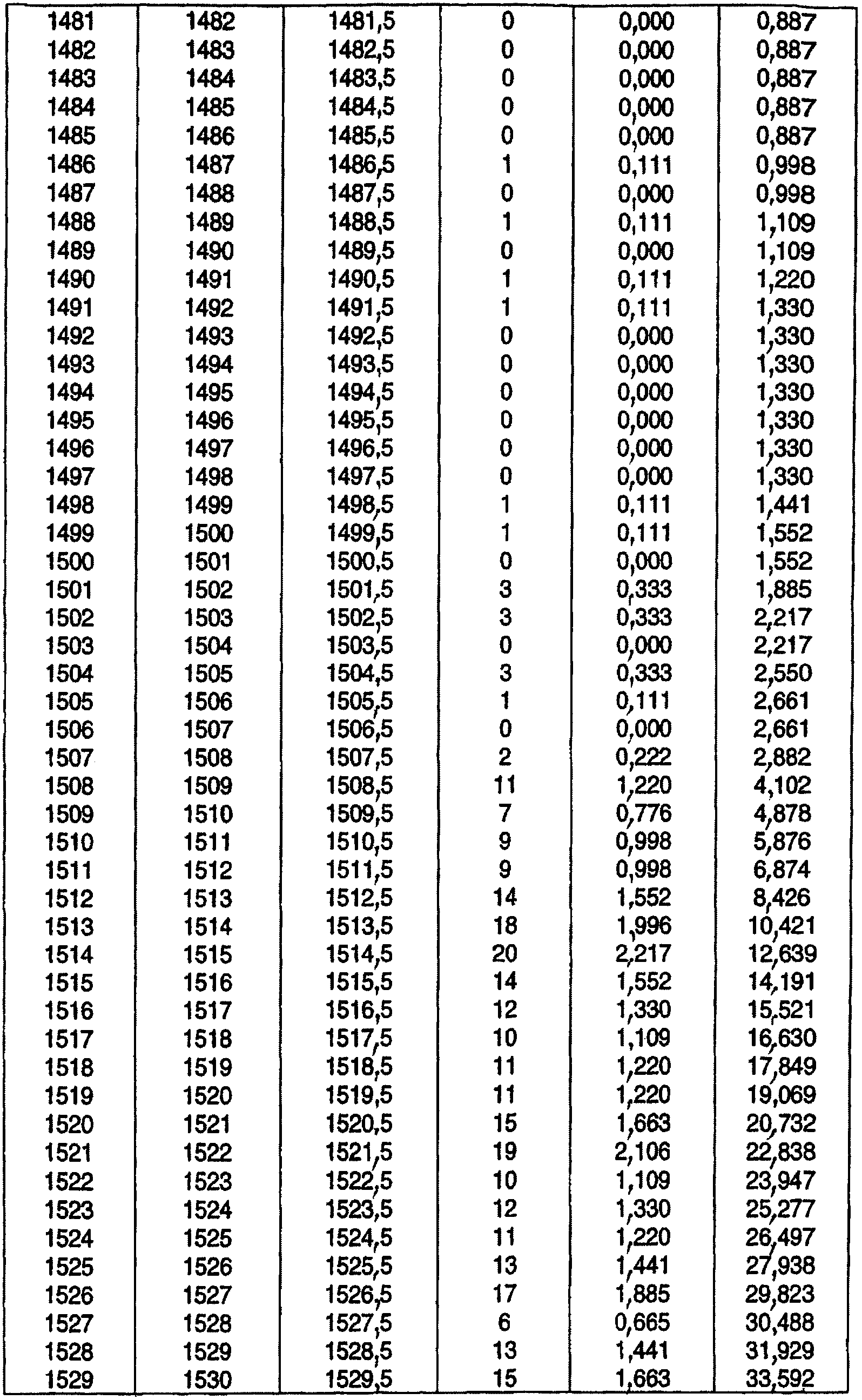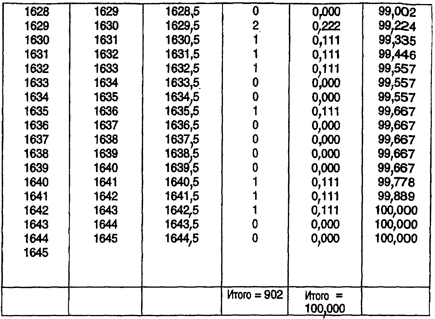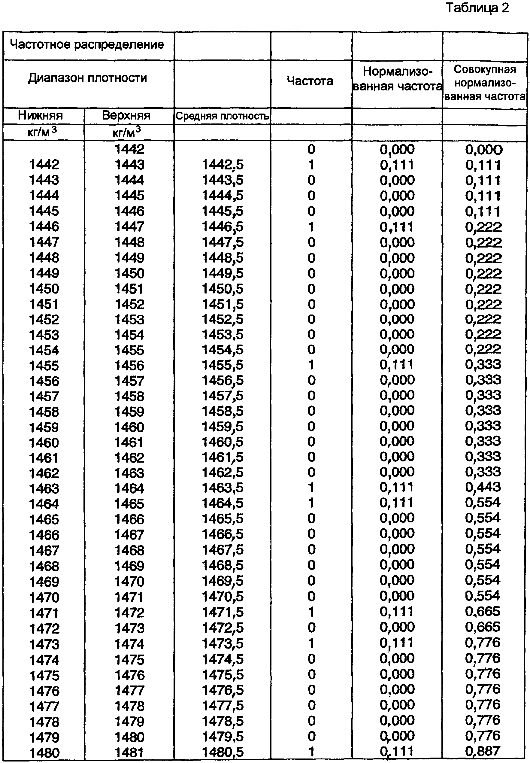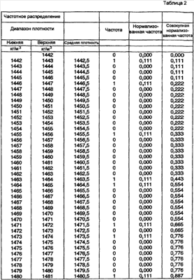 В представленной ниже Таблице 2 приведено нормализованное частотное распределение плотностей, указанных в Таблице 1.