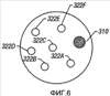Схематическая диаграмма испытательной установки показана на фиг.5. Катализатор подавали в трубу впускного отверстия 310 через канал выпуска воздуха. Испытательное оборудование работало под вакуумом в результате присоединения канала выпуска газового фильтра на выпускном отверстии 314 к впускному отверстию воздушного компрессора 316. Труба впускного отверстия 310 была присоединена к напорной камере впускного отверстия 320 через окна с перегородками 322. Перегородка обеспечивала хорошее распределение поступающего воздуха, несущего пыль, в напорной камере впускного отверстия 320. Напорная камера впускного отверстия 320 была изогнута таким образом, как для конструкции коммерческого TSS. Воздух, несущий катализатор, поступал в циклоны с аксиальным потоком 322 через их завихривающие лопатки 324. На фиг.6 изображен план компоновки трубы впускного отверстия 310 и циклонов 322 (обозначенных как циклоны 322А-322F на фиг.6) в отстойнике 328. Циклоны 322А-322F расположены с шагом по треугольнику, как в обычном TSS. Корпус циклона 326 заканчивается в отстойнике (емкость для хранения) 328 ниже напорной камеры впускного отверстия 320, диаметр которой соответствует верхнему продукту циклона в обычном коммерческом TSS. Концентрированная пыль и захваченный газ выходили из циклонов 322 через прорезь для выпуска твердых частиц 323 в отстойник 328. Часть газа с концентрированной пылью отводилась через стакан для нижнего продукта циклона 330 и после этого фильтровалась на 332 перед тем, как ее смешивали с чистым газом из фильтров на выпускном отверстии для газа 334 перед вводом в линию всасывания воздушного компрессора 316. Расход газа через линию нижнего продукта циклона 336 измерялся и контролировался при помощи двухстворчатого клапана (не показан). Пыль в газе нижнего продукта циклона удалялась в фильтре нижнего продукта циклона 332.