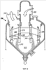 31. Аппарат для разделения смеси газ – твердая фаза, включающий средство для введения смеси в соответствующие впуски множества расположенных рядом друг с другом циклонов с закрытым днищем, средство для выпуска газа с обедненным содержанием твердой фазы из верхних концов циклонов, средство для выпуска твердых частиц, содержащих захваченный газ, из тангенциальных выпусков на нижних концах циклонов, средство для направления части захваченного газа на рецикл в циклоны через отверстия для рециркуляции, выполненные на нижних концах циклонов, средство для экранирования отверстий для рециркуляции от тангенциальных выпускных отверстий для подавления захвата твердых частиц.