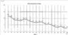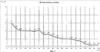 На фиг.6 дана характерная зависимость изменения производительности от времени при вращении барабана, а на фиг.7 – при вибрации. На фиг.8 дана характерная зависимость изменения производительности от времени при совместном воздействии реверсивного вращения барабана и вибрации, причем в этом последнем случае внутри барабана установлены лопасти в виде пластин.