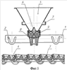 1. Разливочная машина, содержащая заливочное устройство, литейный конвейер с закрепленными на нем мульдами с ячейками, бункер для подачи твердого наполнителя, загрузочное устройство, размещенное под бункером, и привод загрузочного устройства, в которой в зависимости от количества слоев наполнителя она снабжена одним или двумя загрузочными устройствами, а заливочное устройство двумя или тремя последовательно расположенными заливочными носками для подачи расплава в мульды с ячейками, при этом бункер для подачи твердого наполнителя имеет четыре распределителя, расположенных в нижней его части, загрузочное устройство состоит из корпуса, двух дозирующих барабанов, каждый из которых имеет четыре дозирующих емкости – питателя для твердого наполнителя и загрузочные стаканы, а привод загрузочного устройства выполнен в виде двух жестко закрепленных на барабанах шестерен и рейки с гидроцилиндром.