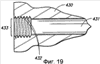 Фиг.19 – вариант выполнения, в котором для увеличения шероховатости используют традиционную винтовую резьбу в выходных отверстиях для влияния на поток и/или скорость хладагента;