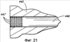 Фиг.21 – другой вариант выполнения изобретения, в котором используются выступы на поверхности отверстия в выходных отверстиях для влияния на поток и/или скорость хладагента;