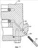 Фиг.7 – частичный разрез части литейной формы, иллюстрирующий подгонку существующего выходного отверстия для хладагента посредством высверливания выходного конца отверстия с целью увеличения его диаметра на его выходном конце;