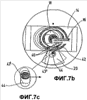 фиг.7а, b и с – другой модифицированный пример выполнения инструментальной головки с уравновешивающими телами в изометрической проекции с вырезом, вид сверху и в разрезе в увеличенном масштабе;