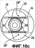 фиг.10а-с – инструментальная головка с суппортом и поворотными уравновешивающими телами, а также непосредственно находящейся в зацеплении зубчатой направляющей, вид сбоку и два вида сверху;