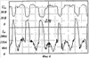 На этапе короткого замыкания для успокоения сварочной ванны управление с помощью микропроцессорного регулятора создает условия для надежного слияния капли с ванной и энергичный, но не взрывной ее перенос в ванну. С этой целью алгоритмом управления микропроцессорного регулятора периодически организуются пропуски во включениях одного из тиристоров (фиг.3,б). В результате в кривой тока возникает провал, в течение которого капля смещается к оси электрода, а ванна подтекает под электрод, что в совокупности создает благоприятные условия для слияния капли с ванной. Далее вступает в действие низковольтная подпитка, ранее запертая более высоким напряжением основной силовой цепи. Благодаря высокому току низковольтной подпитки, а затем и включению очередного тиристора основной силовой цепи формируется пиковый импульс тока короткого замыкания, способствующий разрыву перемычки между каплей и электродом и переходу капли в ванну. В многофазных (трех- и шестифазных) выпрямителях частота следования импульсов, образующихся естественным образом при поочередном включении тиристоров, соединенных с фазами трансформатора основной силовой цепи а+, с-, b+, a-, c+, b- и т.д., составляет 300 Гц. Если пропускать включения отдельных тиристоров, то реализуются частоты 150; 125; 100; 87,5; 75; 67,5; 60 и 50 Гц, дольные от исходной частоты 300 Гц (фиг.4). Например, импульсы с частотой 150 Гц получаются при включении тиристоров через один. Из вышеприведенного списка частоты 150; 125; 87,5 и 60 Гц предпочтительны с точки зрения нормальной работы трансформатора основной силовой цепи без опасности постоянного намагничивания его железа. Регулярный перенос мелкими каплями без длительных коротких замыканий и чрезмерных динамических воздействий на ванну можно обеспечить, если согласовать частоту пропусков во включении тиристоров, запускающих процесс переноса, с естественной частотой образования капель заданного размера. Если принять оптимальным диаметр сферической капли, равный диаметру электродной проволоки dэ, то при известной скорости подачи электродной проволоки Vп необходимую частоту пропусков можно определить по соотношению f=1,5Vп/dэ. Для большинства рациональных режимов сварки в диапазоне диаметров проволоки от 0,8 до 2 мм и скоростей подачи от 3 до 7 м/мин расчетная частота составляет от 50 до 200 Гц.