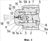 Для улучшения отвода тепла и сохранения максимальной величины окружной компоненты скорости потока рабочего газа по всей длине вихревой камеры завихритель (2) выполнен с винтовыми канавками (19) на внутренней поверхности, фиг.8. Направление винтовой линии винтовых канавок совпадает с направлением окружной компоненты скорости потока рабочего газа в вихревой камере (7).