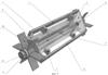 После чего в контейнер 1 засыпаются рабочие тела и, в соответствии с инструкцией по эксплуатации, включаются все системы вибромашины и производится обработка детали 4 на заданных режимах. При этом деталь 4 вместе с технологическим приспособлением 3 в процессе обработки вращается относительно своей продольной оси за счет кинетической энергии движения рабочей среды, которая передается технологическому приспособлению 3 вместе с деталью 4 с использованием металлических лопастей крыльчаток 10.