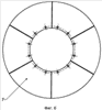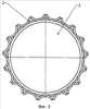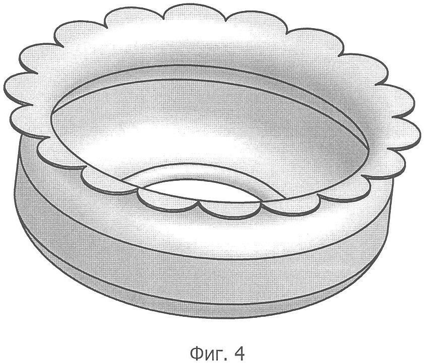 На фиг.1 представлен вид ножа сверху, на фиг.2 представлен вариант исполнения ножа с жестким диском – вид спереди с разрезом, на фиг.3 представлен вид ножа снизу – со стороны режущих кромок, на фиг.4 представлен внешний вид изделия, получаемого после разрезания покрышки, на фиг.5 представлен вариант исполнения ножа с диском, выполненным из высокоэластичного материала, на фиг.6 представлен вариант исполнения диска в виде разъемной конструкции, состоящей из секторов, вид сверху.