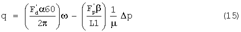 Уравнение (18) характеризует производительность работы червяка экструдера. На Фиг.4 представлены прямые линии 1, 2, 3 для расхода q в зависимости от р для различных значений min< < max. По виду данных прямых 1, 2, 3 можно заключить, что с увеличением от min до max данные линии поднимаются вверх вдоль оси ординат параллельно друг другу. С увеличением р параметр q уменьшается.