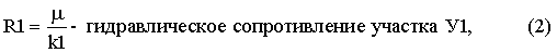 Так как участки У1 и У2 включены последовательно, то общее для двух участков гидравлическое сопротивление R будет равно [2] сумме гидравлических сопротивлений двух этих участков: