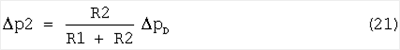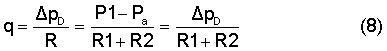 На Фиг.3 представлена функциональная схема вышеуказанных двух участков головки экструдера. На участке У1 (длиной 1) возникает перепад давлений Р1=P1-Р за счет наличия гидравлического сопротивления R1 этого участка. На участке У2 (длиной 2) возникает перепад давлений Р2=Р-Pa за счет наличия гидравлического сопротивления R2. Оба участка У1 и У2 включены последовательно, и перепад давлений на входе и выходе данного последовательного соединения участков равен pD= р1+ р2. Для первого участка У1 на основании законов гидродинамики [2] можно записать уравнение: