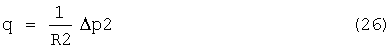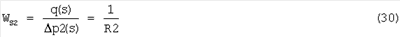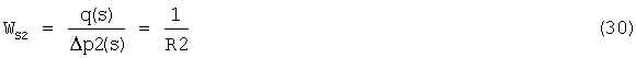 Из рассмотрения структурной схемы (Фиг.5) и уравнений (25), (21), (26) видно, что с увеличением возрастает параметр p, р2, расход q, поперечный размер D. Также с увеличением гидравлического сопротивление R2 будут возрастать параметры рD, р2, давление Р и согласно передаточному звену 2 будет уменьшаться производительность q и D.